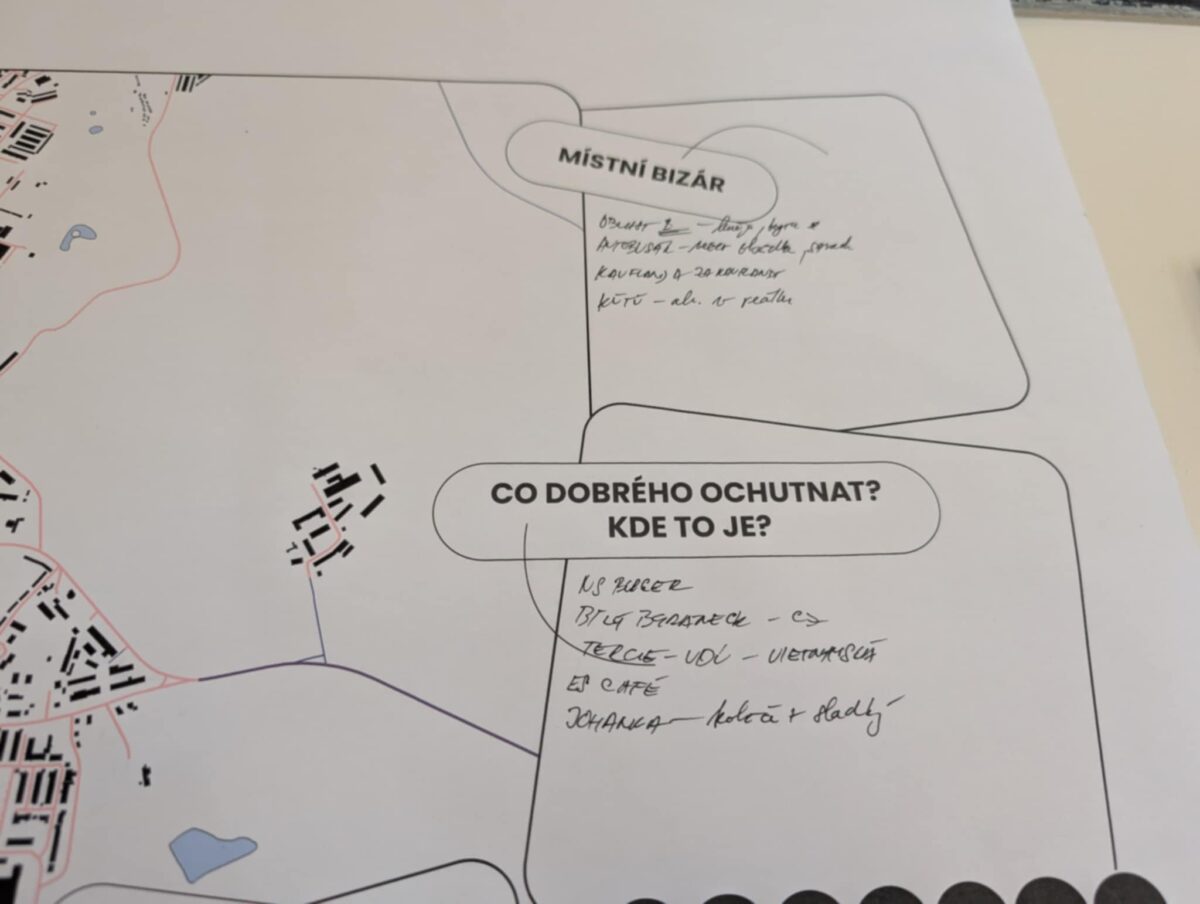 Na gymnáziu v Kadani jsme měli větší časovou dotaci a mohli jsme program rozšířit i o workshop a práci s mapami. Studenti vytvořili „pocitové mapy“, do kterých zaznamenali: