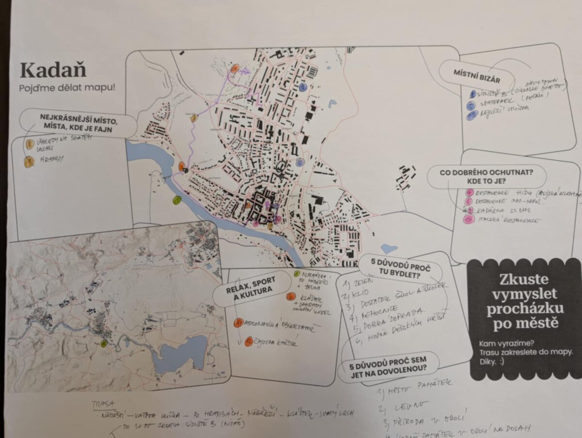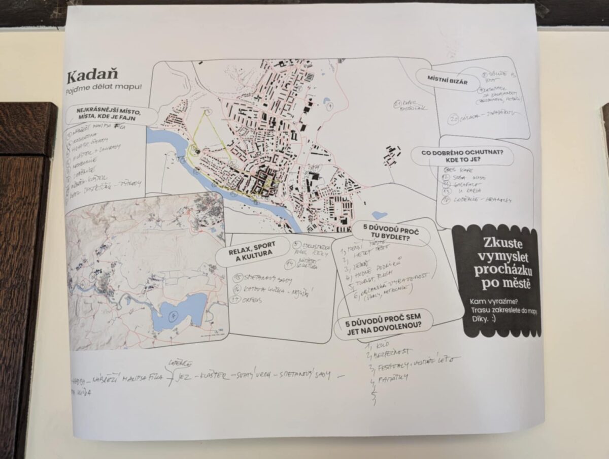 Další úkol nesl název „Pojďme ukázat Kadaň světu“. Studenti se měli zaměřit na to, co je v Kadani hezké, zajímavé , ale i bizarní a to rovnou zakreslili do map, které by dali návštěvníkům Kadaně. Objevovala se tradiční místa jako historické centrum, nejužší ulička ve střední Evropě, památky, kulturní akce, místní gastronomie, ale i netradiční tipy na místní bizár“ – večerka s největším sortimentem ve městě, skulptury před kinem apod. Šest studentských skupin tak vytvořilo originální mapy, které ukazují, jak mladí lidé vidí své město a jak by ho chtěli představit návštěvníkům. Společně měli vymyslet i 5 důvodů, proč navštívit Kadaň a 5 důvodů, proč bydlet v Kadani. S výsledky musel být spokojen i přítomný starosta města Jan Losenický, Kadaň je pro studenty opravdu srdeční záležitost.
